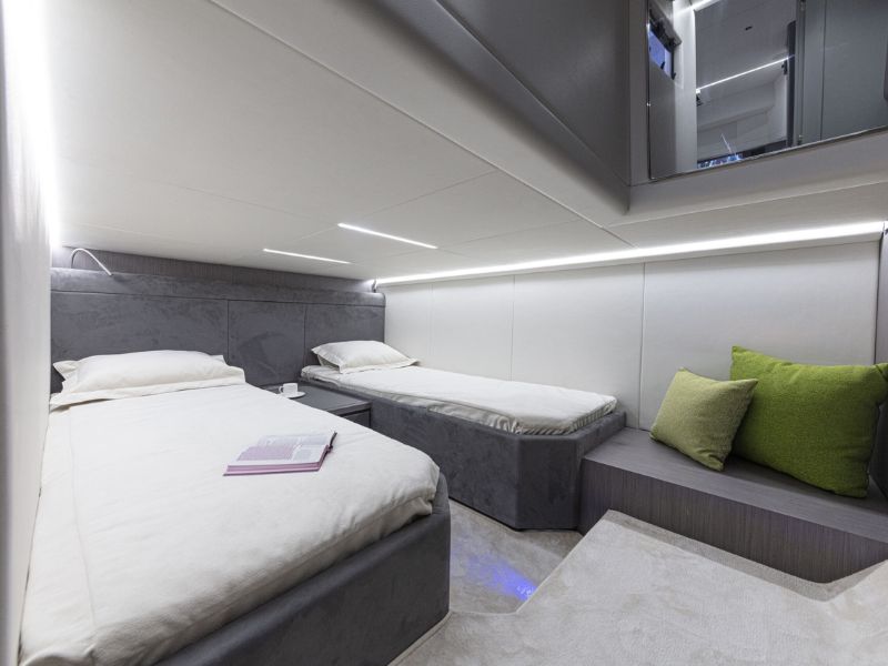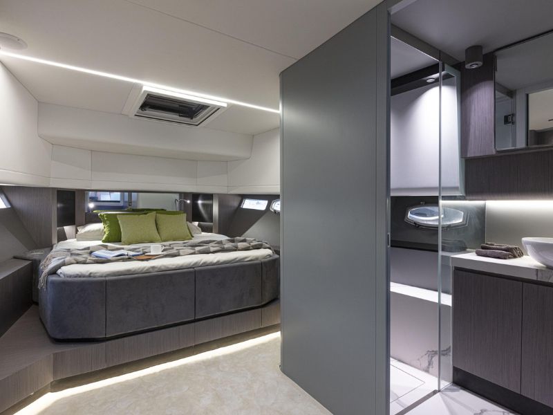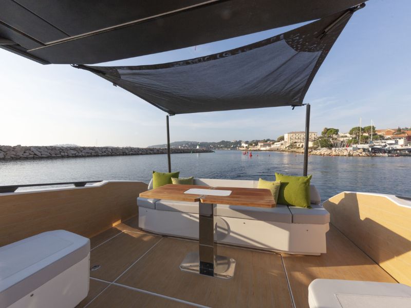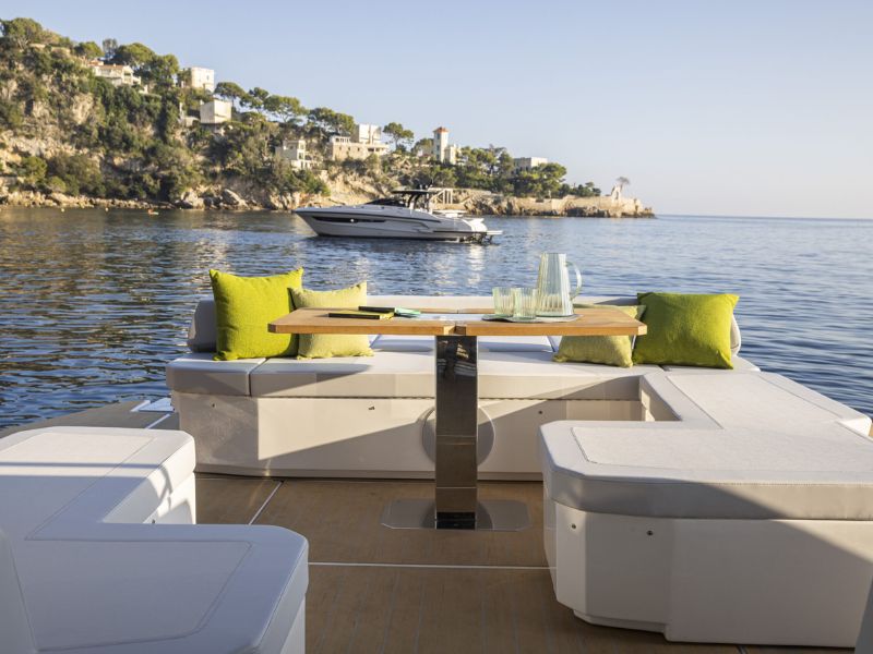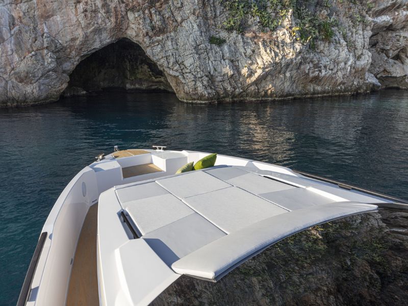 Con 13 metros de eslora, este modelo puede funcionar con motores fueraborda o intraborda de propulsión por eje (motores de popa disponibles bajo pedido), lo que garantiza un rendimiento excepcional . Aquí, el estilo se fusiona a la perfección con la funcionalidad y el dinamismo: la combinación perfecta para aventuras inolvidables en el agua.